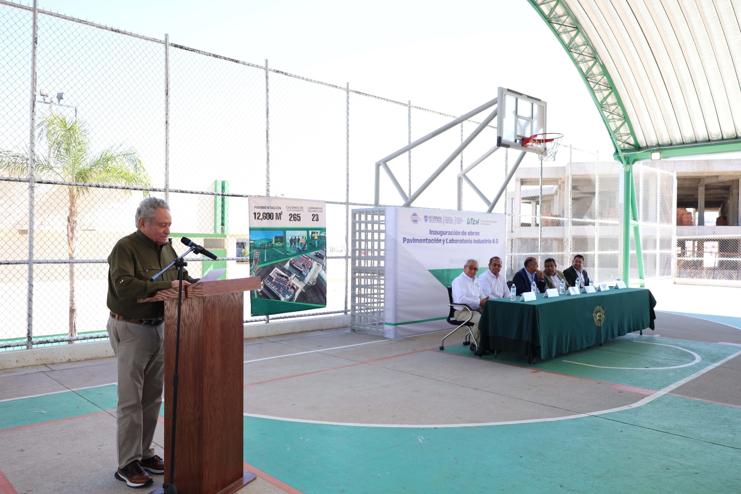 El evento, presidido por el rector Dr. Kamel Athie Flores, contó con la presencia de autoridades estatales como el Lic. Francisco Hugo Gutiérrez Dávila, Secretario de Educación y Deporte; el Lic. Manuel Guillermo Márquez Lizalde, Subsecretario de Educación Media Superior y Superior; el Ing. Martín Isaac Guzmán Nieves, Subsecretario de Construcción e Infraestructura; y el Mtro. Iván Ortega Ornelas, Director General del Instituto Chihuahuense de Infraestructura Física Educativa (ICHIFE), entre otros funcionarios y representantes universitarios.