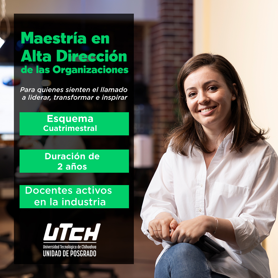 La Universidad Tecnológica de Chihuahua (UTCH) informa que el registro de aspirantes para la Maestría en Alta Dirección de las Organizaciones y la Maestría en Ingeniería para la Optimización de Procesos de Manufactura (Manufactura Inteligente – Industria 4.0) se ha extendido hasta el 15 de abril de 2026.
